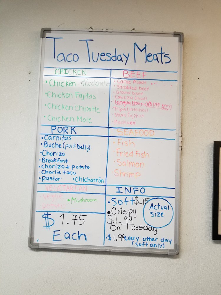choice of, Asada, carnitas, tripa, al pastor, lengua, cabeza, chicken and chorizo with onion and cilantro.