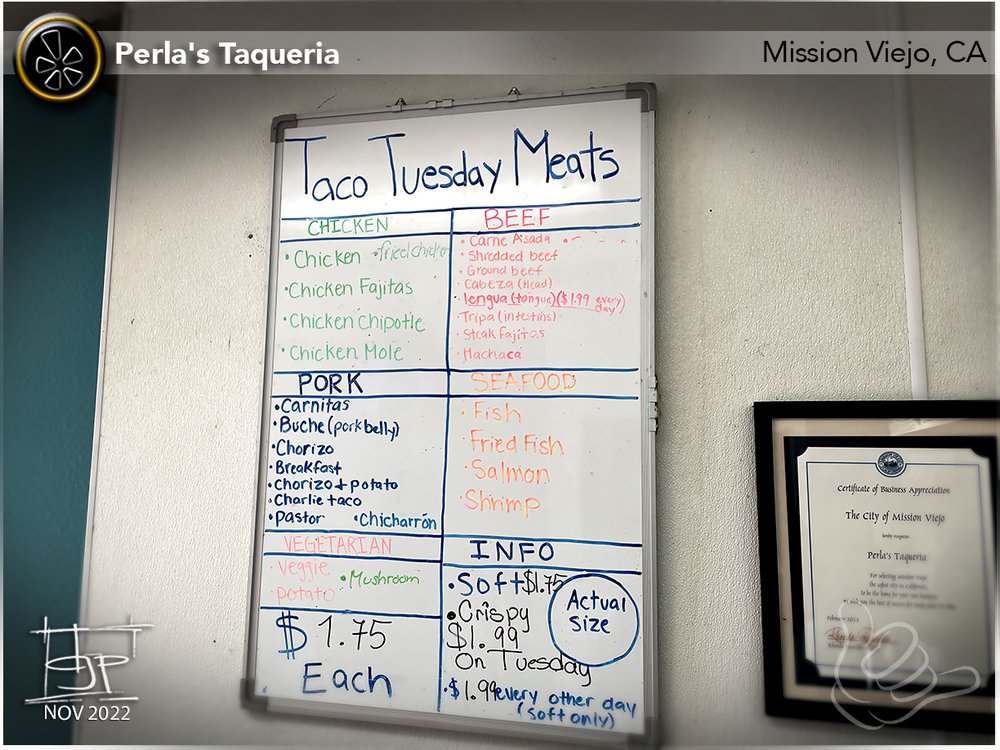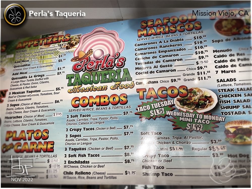 Perla's Taqueria is a hidden gem in Mission Viejo, offering authentic Mexican cuisine with a diverse menu. Customers rave about the flavorful dishes, particularly highlighting the lengua, asada burrito, chorizo breakfast burrito, and tripas tacos. The small family-run establishment prides itself on fast service and reasonable prices, catering to regulars and newcomers alike. While the dining area is cozy, the food speaks volumes with each bite. The al pastor burrito, beef taquitos, and street tacos are highly recommended, served with a variety of flavorful salsas. Perla's Taqueria is a must-visit for those craving comfort food made to order with a touch of homemade goodness. Experience the traditional flavors of Mexico at this casual spot that will leave you coming back for more.